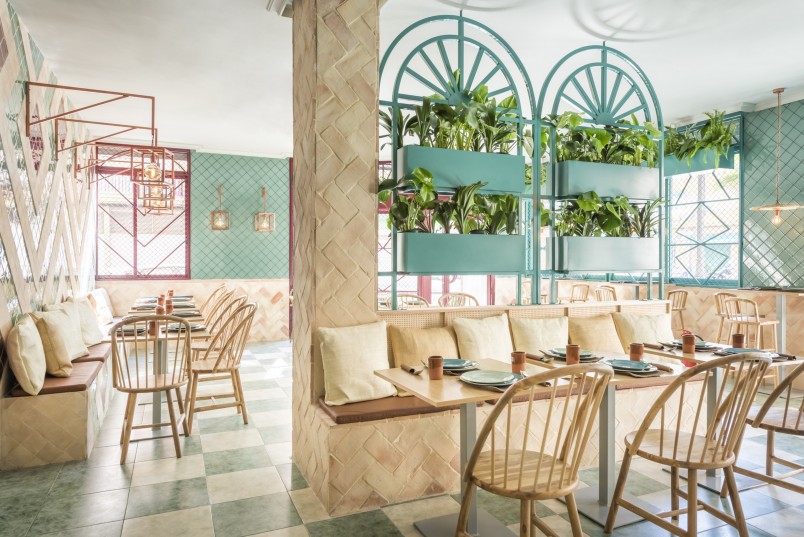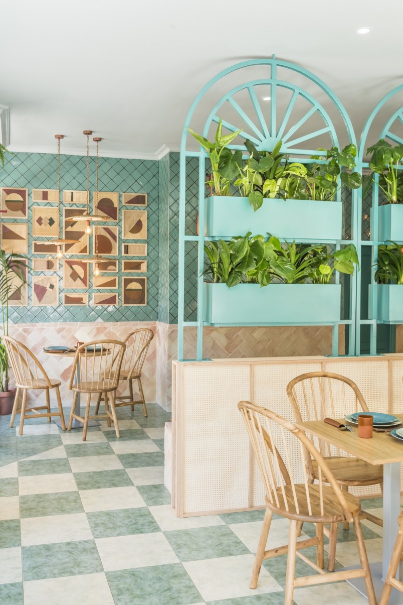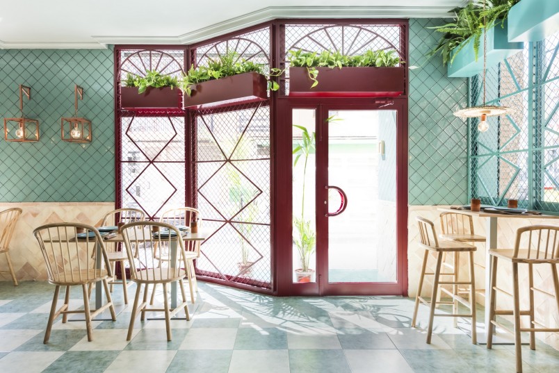 商家對美食存在驚人激情,源于如此的向往,商家期盼餐廳能夠突顯故鄉(xiāng)的特點,令他覺得如同在家里一樣。此餐廳按商家的設想設計,餐廳以偏藍的綠色為主色調(diào),用以紅色裝點。綠白相間的地板磚和幾何圖形的墻面磚構(gòu)建出清爽明快的氛圍。 |