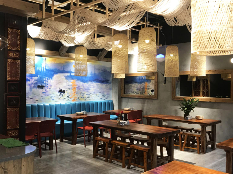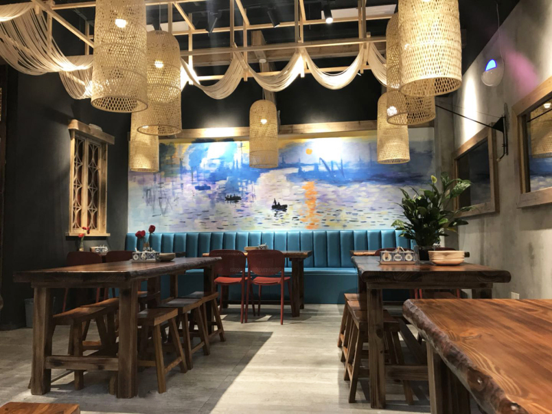長沙老陳記面館裝修設(shè)計中原始空間層高可喜,尊重原始結(jié)構(gòu)、借用原來材質(zhì)構(gòu)筑樸質(zhì)的空間,再以裝置、{日出印象}繪畫、老花窗等。步入小館,好像又回到了以前那儉樸的悠悠歲月,仿佛又聞到了久違了的老面的醇香。。 |