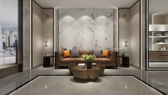 箭牌瓷磚商業(yè)展廳設(shè)計風(fēng)格:現(xiàn)代輕奢;主要材料:白色乳膠漆、木飾面、黑砂鋼;自然的木紋,精致的線條,并運用現(xiàn)代塊面狀的設(shè)計手法,極力營造一種國際化、現(xiàn)代輕奢的商業(yè)展廳空間,讓人進去有一種自然的舒適體驗,并通過空間的設(shè)計和材料的組織,極力體現(xiàn)一種產(chǎn)品的高端感。空間整體視覺以米灰、白色、咖色為主調(diào),輔以一些孔雀藍家私點綴其中,注重細節(jié)及比例美感,強調(diào)商業(yè)空間的合理布局。 |