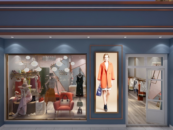對于路邊獨立型服裝店而言,最重要的是店面計。由于路邊服裝店沒有與外界分隔的空間,不僅需要考量與外部環(huán)境結(jié)合以外,同時需要考量怎樣以其內(nèi)部環(huán)境來宣傳服裝店的品牌形象。所以我們們可以看到整體店門設(shè)計以及櫥窗的布置,外面是玻璃落地窗櫥窗模特造型各異,看上去甚為有時尚美感 |
