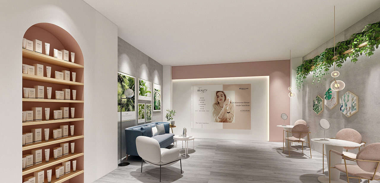 AIKAXI美容店根據(jù)對(duì)材質(zhì)挑選和顏色的搭配的場(chǎng)域把控,理清空間旋律主次,指引人流慣性去向,創(chuàng)造視覺(jué)逗留點(diǎn)。店鋪的外立面,線面輕柔流暢,合乎女性對(duì)凹凸線條的所有想象;柔嫩的粉色與精巧的簡(jiǎn)白,使所有女性的溫柔都能無(wú)限釋放,這就是AIKAXI的顏——簡(jiǎn)單一點(diǎn)、通透一點(diǎn)、時(shí)尚一點(diǎn)、杜絕花哨。 |