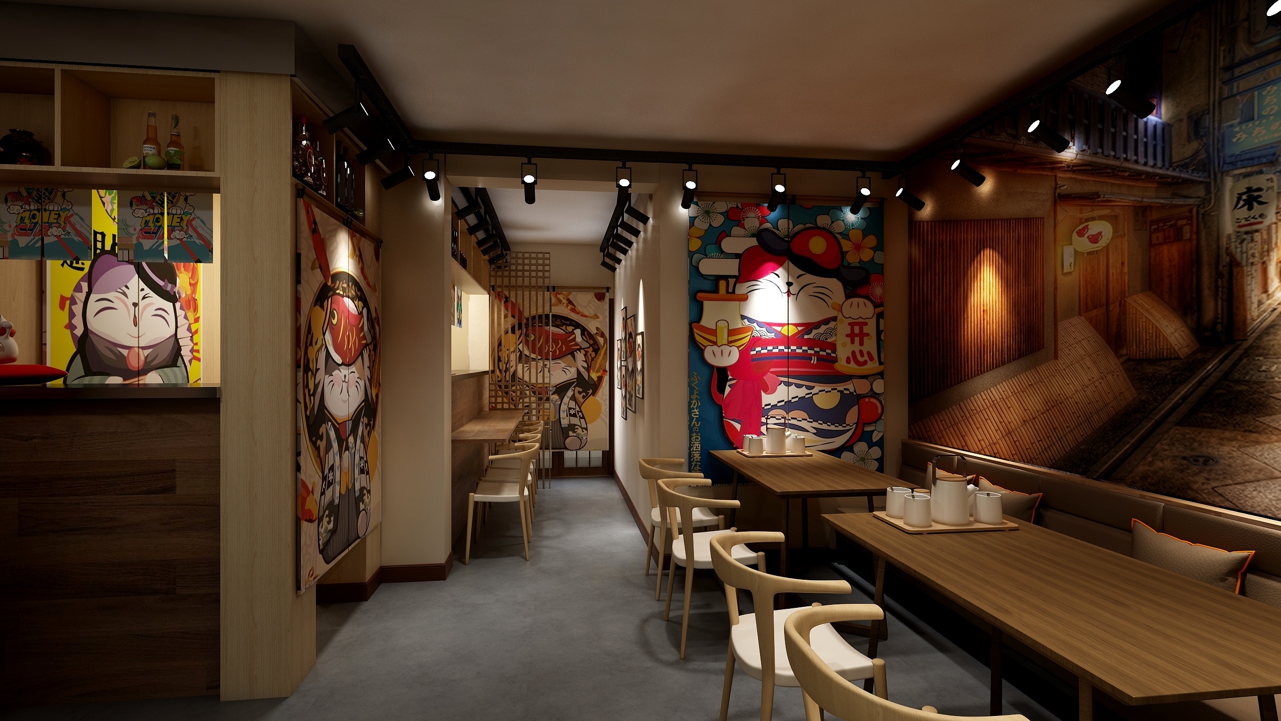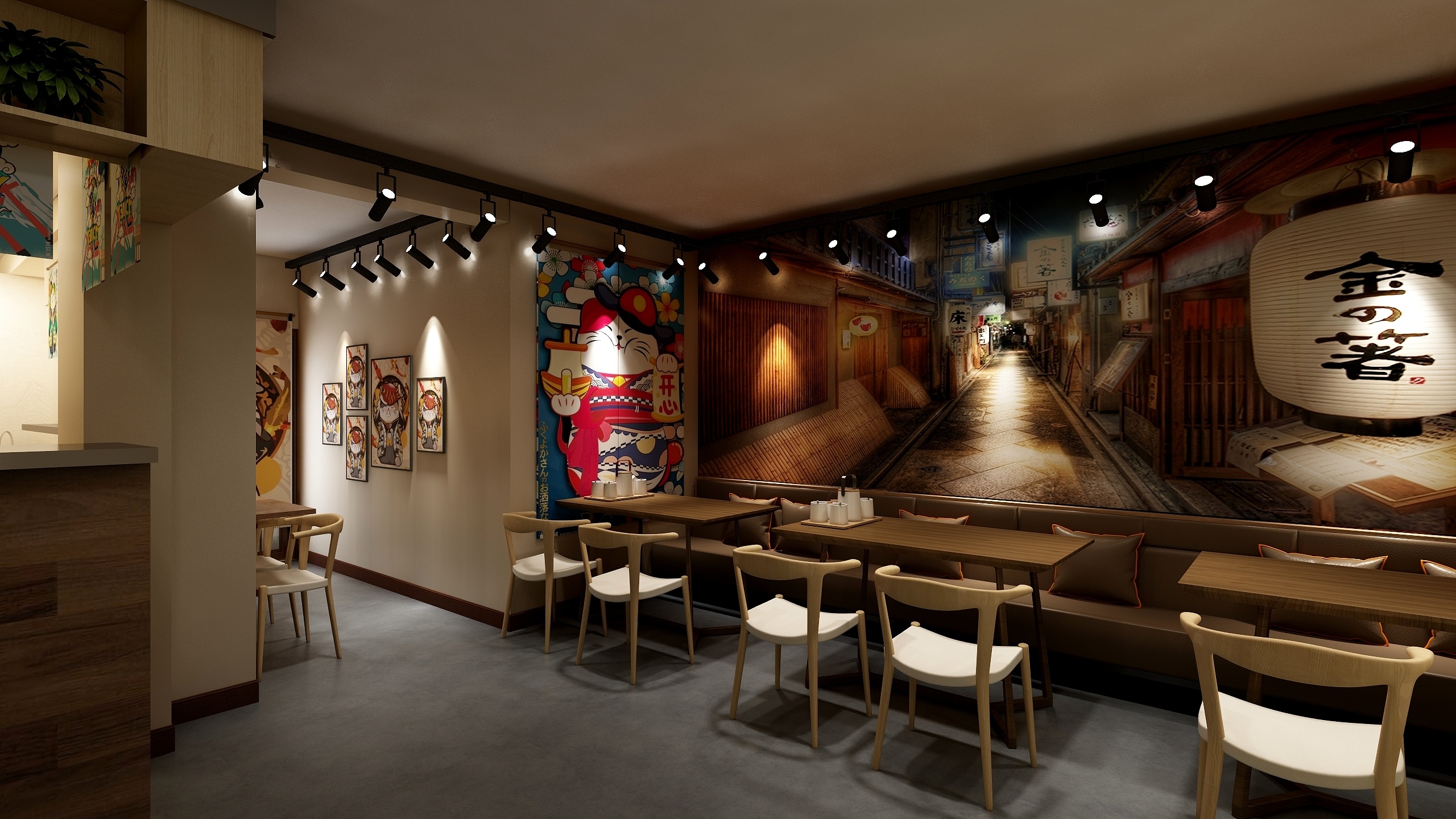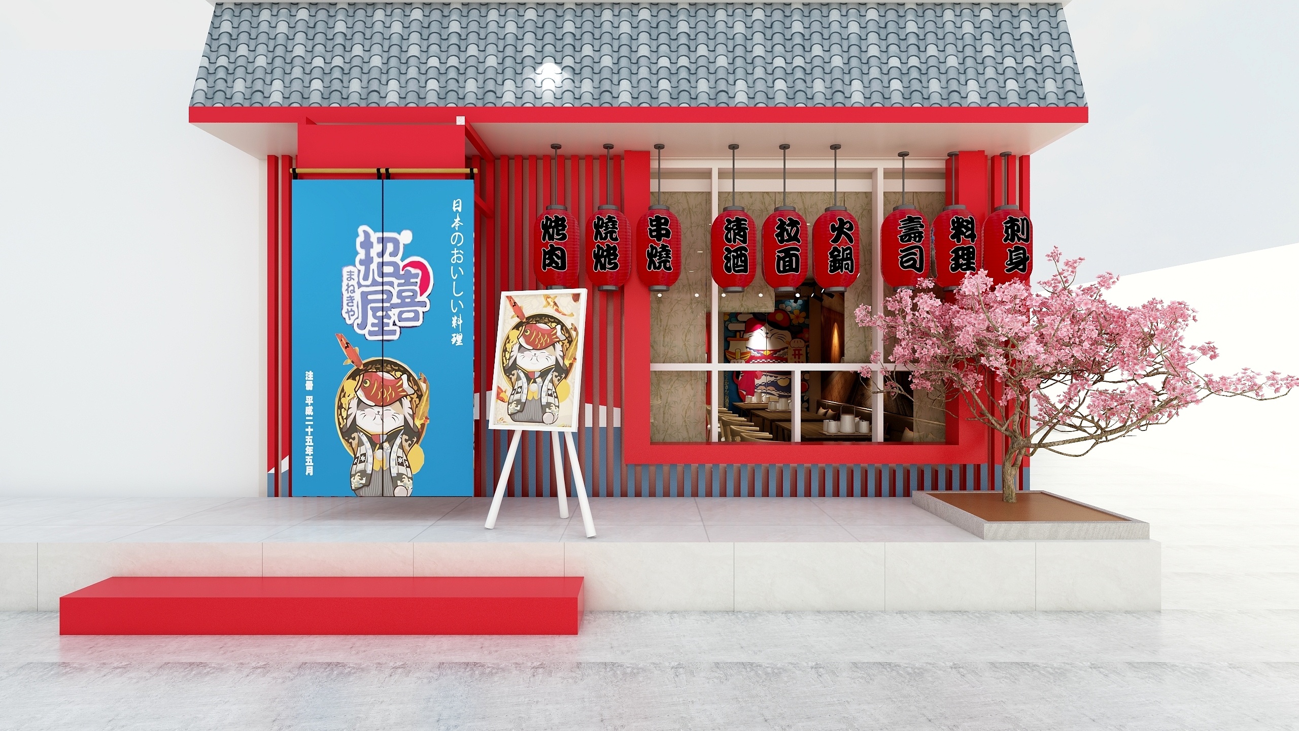 招喜屋日式料理店構思延用了傳統(tǒng)日式風格的設計元素,另外采用了現(xiàn)代的構思技巧,門口招待和吧臺采用許多的木質材質、石材等現(xiàn)代裝飾材質展開空間構建,同時還與傳統(tǒng)日式設計元素相互結合,如包間的木質隔斷、原木質餐桌、日式門簾,日式餐廳多元性的構思和文化概念,時尚脫俗,色彩明快,和風煦語,春意盎然。 |