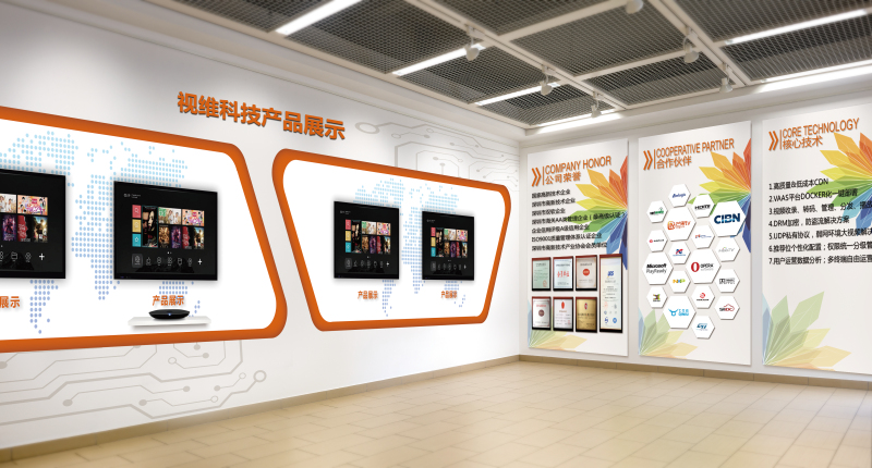視維科技展廳設(shè)計加入科技元素,通過燈光布置為基調(diào)來進(jìn)行環(huán)境氛圍渲染,加入多媒體設(shè)備,如全息投影、VR虛擬等讓展廳設(shè)計效果變得生動有趣,也給參觀者帶來了更好的互動體驗,打破傳統(tǒng)枯燥的參觀流程,融入科技感的展廳提高了企業(yè)展廳的檔次,也加深了參觀者對公司的印象,展示了現(xiàn)代化科技展廳的魅力。 |