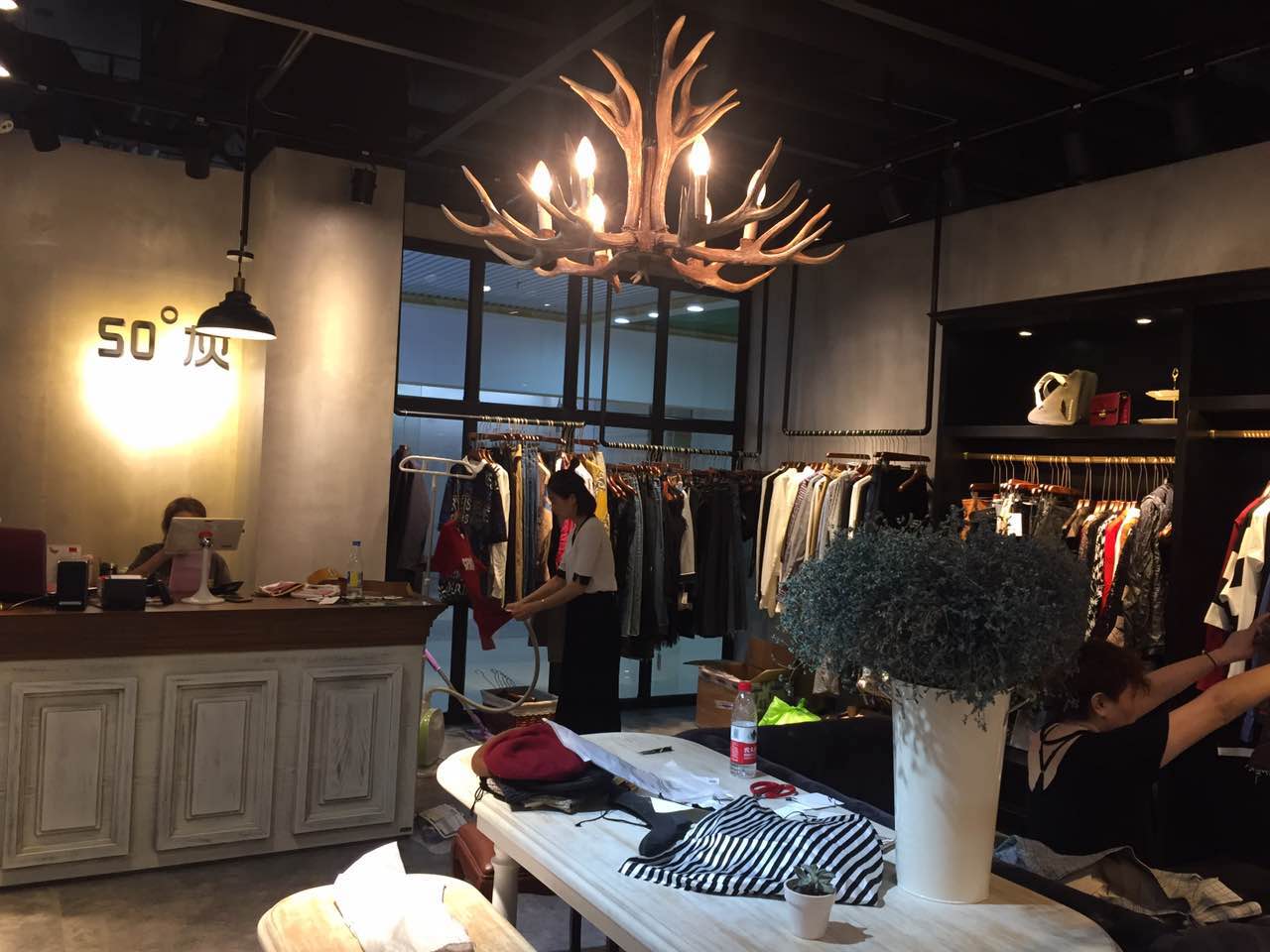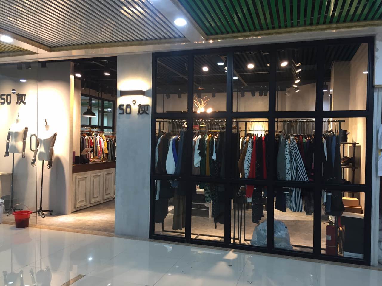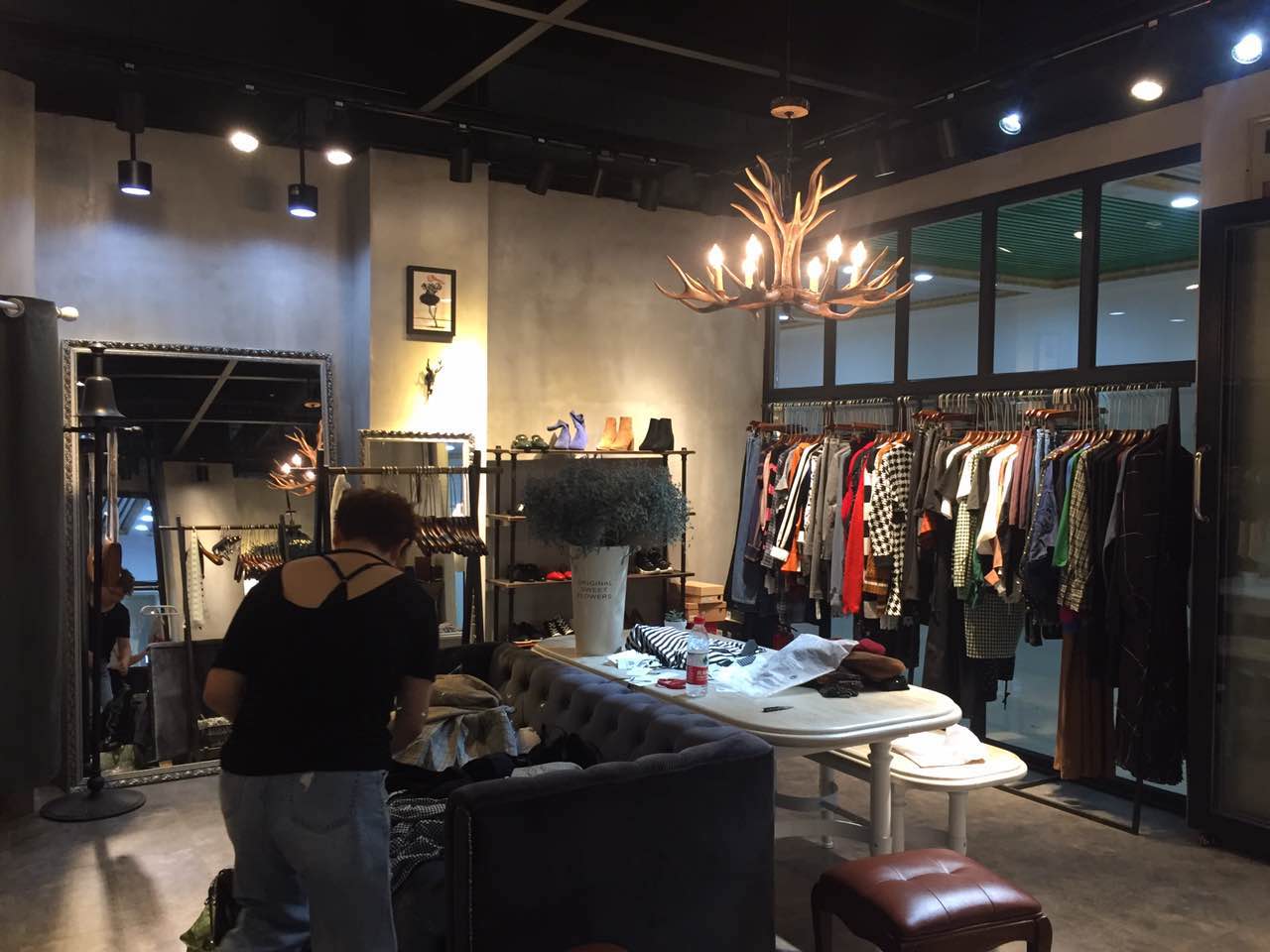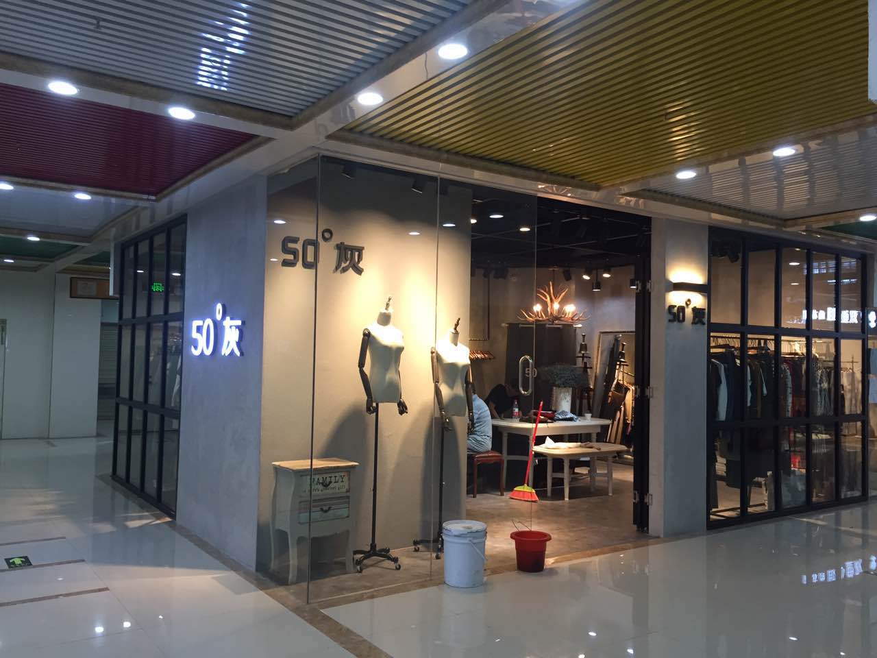 設(shè)計師采用黑白灰為主色進行裝修,地板則采用石材進行鋪設(shè),使得空間顯得大氣。通過暖白色燈光營造出溫馨的氛圍。能表現(xiàn)流行趨勢或主題的服裝作為重點。大空間的壁面陳列可塑性強,利用墻面顏色,燈光照明的技巧使服裝更具有立體感。