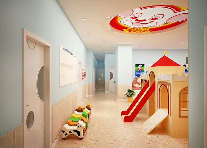 在室內(nèi)色彩設(shè)計(jì)上,根據(jù)幼兒情緒不穩(wěn)易受環(huán)境影響的特點(diǎn),以暖色調(diào)淺黃色為主與紅色搭配。根據(jù)幼兒好奇、好動(dòng)的特點(diǎn),選擇生動(dòng)活波的藍(lán)色為主與白色搭調(diào)。給幼兒以安全、溫馨的滿足感。