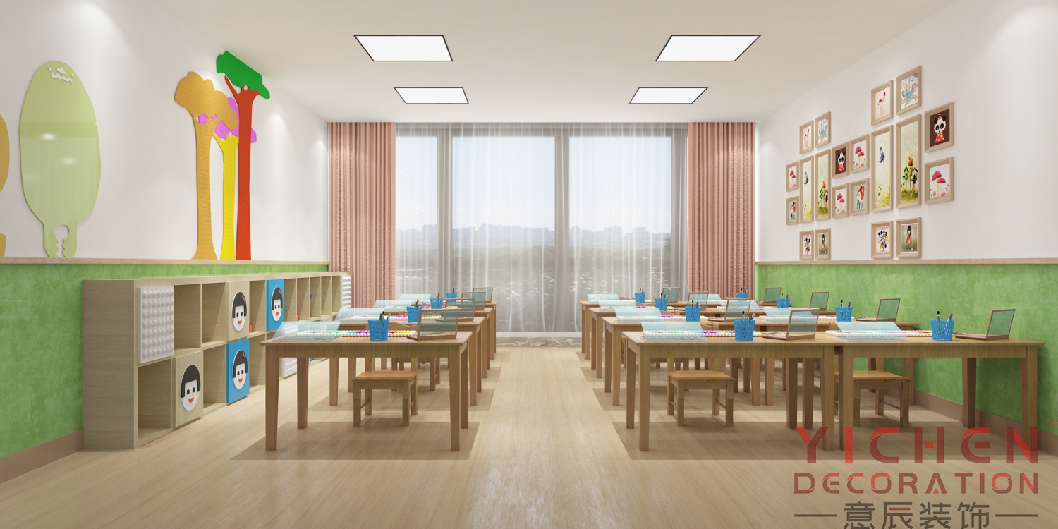 本案設計主要以綠色和白色為主,既提升孩子專注力的同時,又觸發(fā)孩子的好奇心。感統(tǒng)教室和樂高教室均設計了教具柜,將教具統(tǒng)一歸放,即提高空間利用率又使整個空間顯得更加的干凈整潔。 |