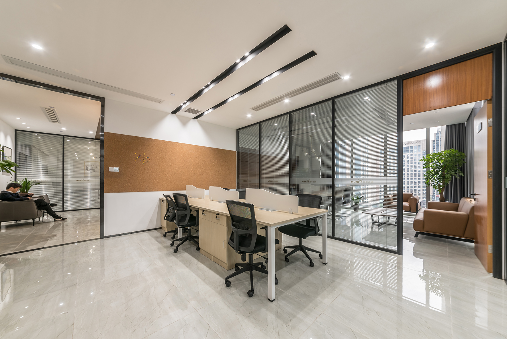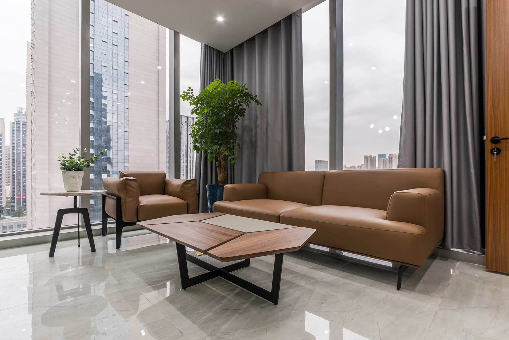 本案立于現(xiàn)代化快節(jié)奏高效的商業(yè)模式,去繁從簡,選取原木、石材以及通透的玻璃作為主要材料, 經(jīng)過設(shè)計的動線將大空間又分割為開合又獨(dú)立的使用空間,營造一種商業(yè)和生活的互補(bǔ)關(guān)系。整個空間分為前臺、辦公區(qū)、會議室、路演廳、總經(jīng)理室、董事長室,各個區(qū)域的劃分將空間合理、完美的利用,滿足了空間的功能要求,同時也給工作人員營造了高效,舒適的辦公環(huán)境。在功能布局上,我們更主張“開放”和“可變”,不做多余的設(shè)計,但做充滿實(shí)用和擁抱變化的設(shè)計。 |