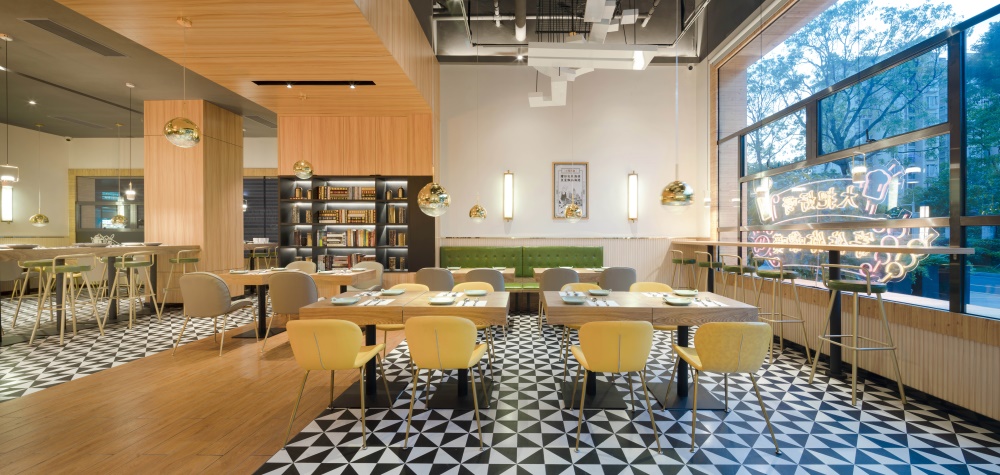 輕港食餐飲連鎖店通過三進(jìn)式格局的創(chuàng)意設(shè)計(jì),利用用餐區(qū)材質(zhì)與層高的切換,三個(gè)立體盒子的室內(nèi)空間形態(tài)一覽無余,3種不一樣的節(jié)奏感知室內(nèi)空間層層遞進(jìn)。門頭招牌立面,簡(jiǎn)約而不乏細(xì)節(jié),構(gòu)造輪廓清楚干練。木紋立體盒子置入整個(gè)室內(nèi)空間,猶如一道美麗風(fēng)景秀麗的濱海之窗,客戶從而而入一個(gè)愉悅的用餐室內(nèi)空間,肆意享用舒適室內(nèi)空間中的美食樂趣。全木質(zhì)構(gòu)造的設(shè)計(jì),提供返璞歸真的內(nèi)心感受。左邊以人物手繪襯托,右邊以現(xiàn)代書柜聚焦,室內(nèi)空間視覺向心力驟然提高,港式文藝清新范兒迎面而來。 |