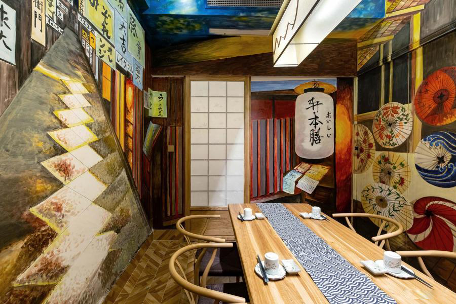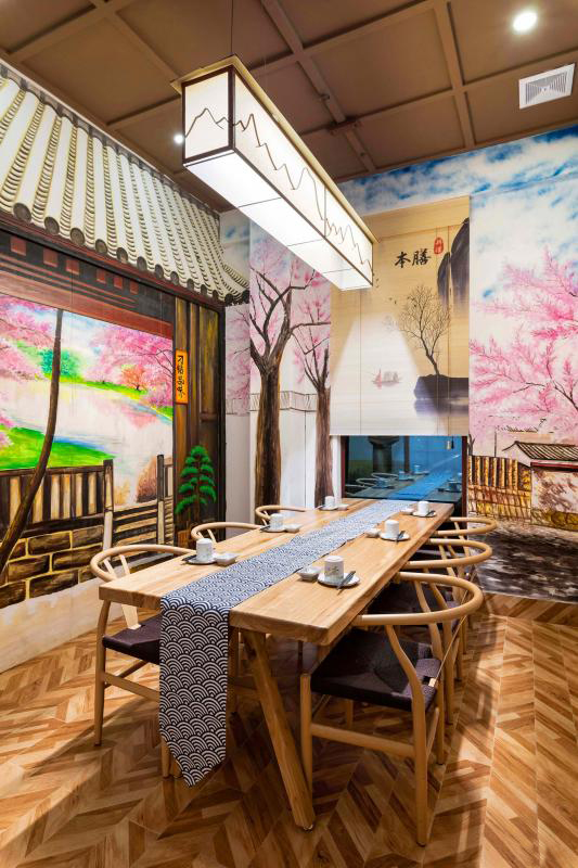 說到日本,大家首先聯(lián)想到櫻花,店面日式燈籠泛著的粉紅色燈光,店內(nèi)肥碩的魚生,恰好是和櫻花最佳的搭配。門外的2個(gè)園林小景亦是本膳料理店面的亮點(diǎn);左側(cè)的日式景觀燈和竹樣農(nóng)具,使人感受到日式溫馨小家的淳樸淡雅,右側(cè)的羅漢松愈發(fā)淡雅的氣氛添置不一樣的禪意景觀之后,入門后便是餐館區(qū)域,大批的木色當(dāng)做空間主打基礎(chǔ)色,以竹青色和白色為輔助色。認(rèn)真細(xì)致安靜的色調(diào),讓空間呈現(xiàn)出優(yōu)雅干凈之態(tài),展現(xiàn)出日式特有的禪意氛圍。以木格柵隔斷打造出讓人感覺緊密并不擁擠,提高消費(fèi)檔次和用餐的私密性包廂空間,設(shè)計(jì)師運(yùn)用日式風(fēng)榻榻米席地而坐,努力打造精致而恬靜的參與空間,反映日式文化餐飲風(fēng)情包廂選用日式傳統(tǒng)的日本酒,餐具,裝飾畫,可想而知每一個(gè)角落設(shè)計(jì)師都花了精力布置,很適于拍照片發(fā)圈“假裝在日本”,并且本膳的這類精致的裝潢,無一沒有告訴吃貨們,盡管再疲憊,一定有那么一個(gè)地兒能夠令你放松身心。 |
