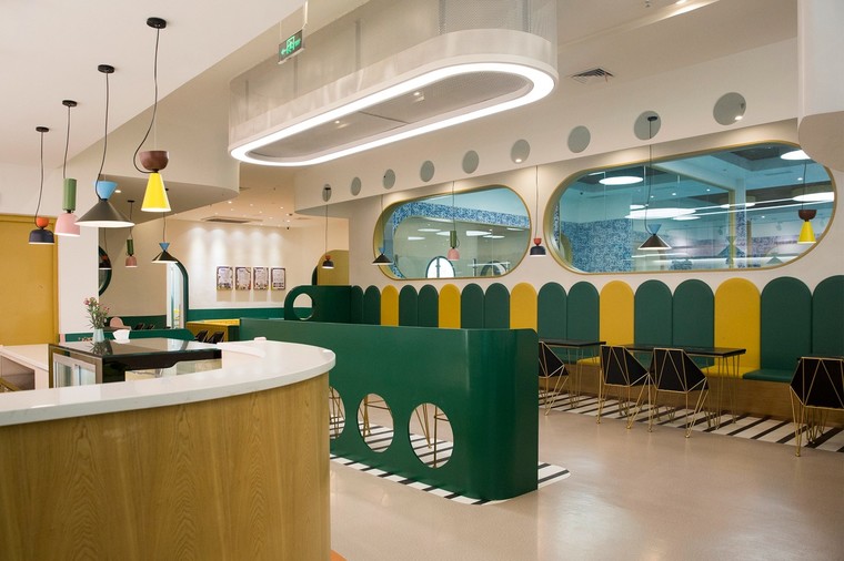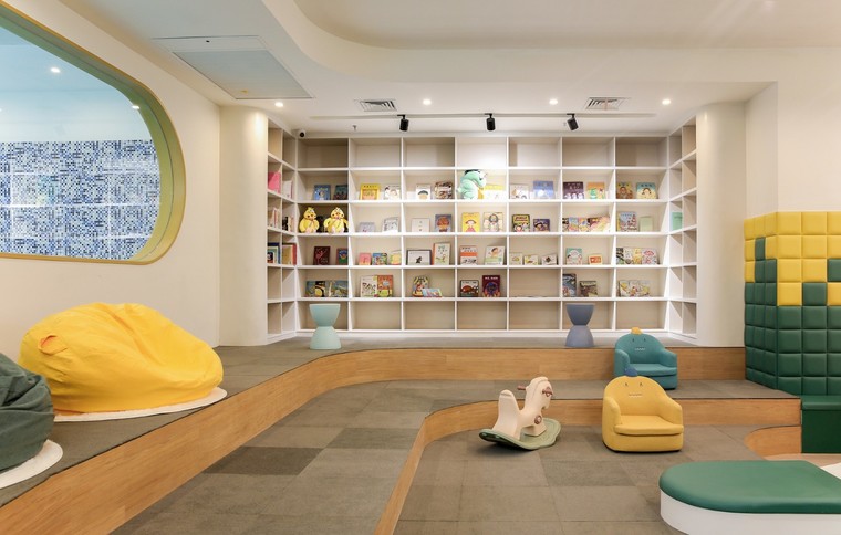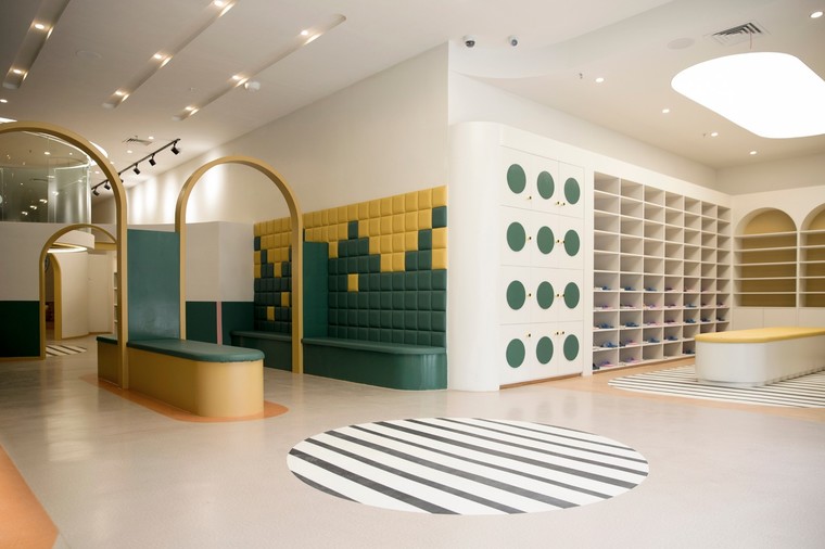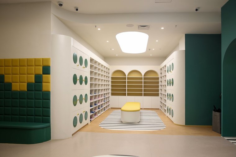 該案例以弧形元素及個性色彩的設(shè)計概念帶給家長及孩子一個有驚喜、有體驗的趣味空間,促進(jìn)父母和孩子更多的互動與陪伴。讓父母一起參與孩子成長,激發(fā)孩子們對發(fā)明創(chuàng)新的興趣和熱情,及對世界的好奇心和探索欲。空間布局上,通過合理的空間動線及造型結(jié)構(gòu),使這些不同功能的空間彼此交融。保證空間形象的整體性的同時,又確保各空間能進(jìn)行互動交流。開放共享、又獨立私密,不同的空間體驗在這里有機結(jié)合成一個整體。孩子的健康成長離不開安全,我們將弧形元素融入設(shè)計中,講究空間的流動性與靈活分隔,在給兒童帶來生動性體驗的同時,給孩子構(gòu)建一個自然柔和的趣味空間。綠色、黃色、粉色、黑色、藍(lán)色,多變的色彩在滿足孩子主體性的同時,又兼顧家長的審美,采用簡約的設(shè)計手法,實現(xiàn)各區(qū)域的雙色碰撞,設(shè)計出極具視覺沖擊力的創(chuàng)意空間。 |